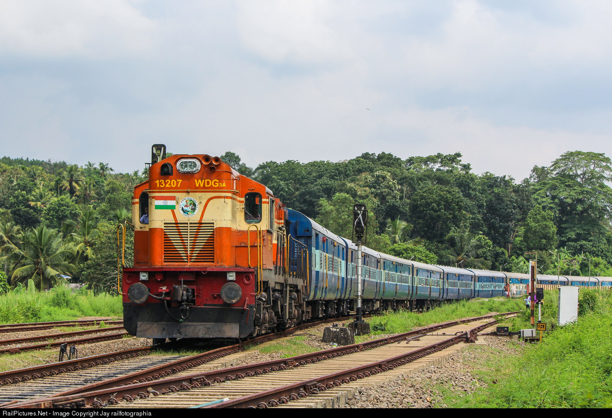 ERNAKULAM shed WDG-3A leaving Punalur after scheduled halt curving through the hilly terrain of Punalur area