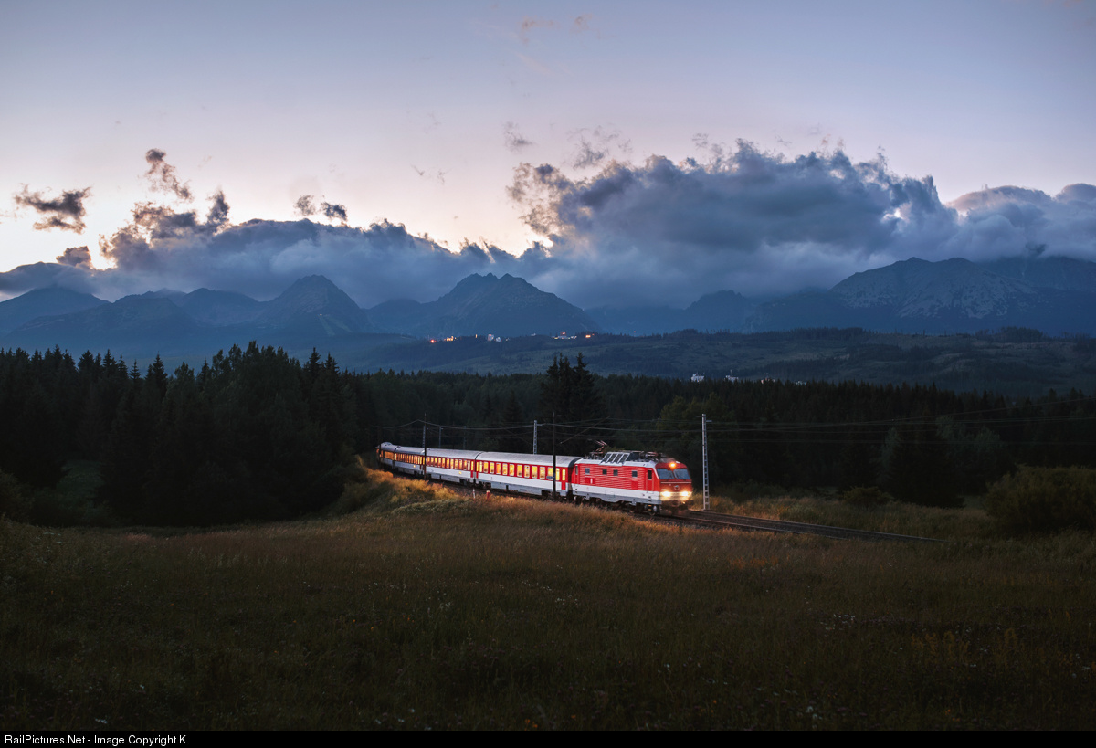 | Last Intercity of the day leaves behind the summit at Strba (896 m a.s.l.) as it turns away from the High-Tatras. Shot in the very last lights, as high as ISO4000 and 1/60th at F1.4. |