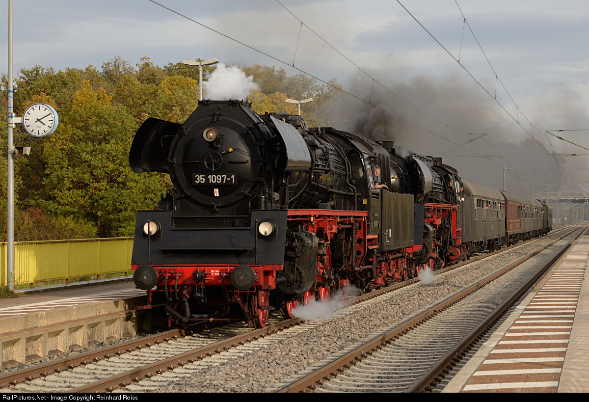 | 35 1097 (former DR 23 097) and Pacific 01 519 head a special on a round-trip from Stuttgart via Ulm - Singen - Rottweil back to Stuttgart. |