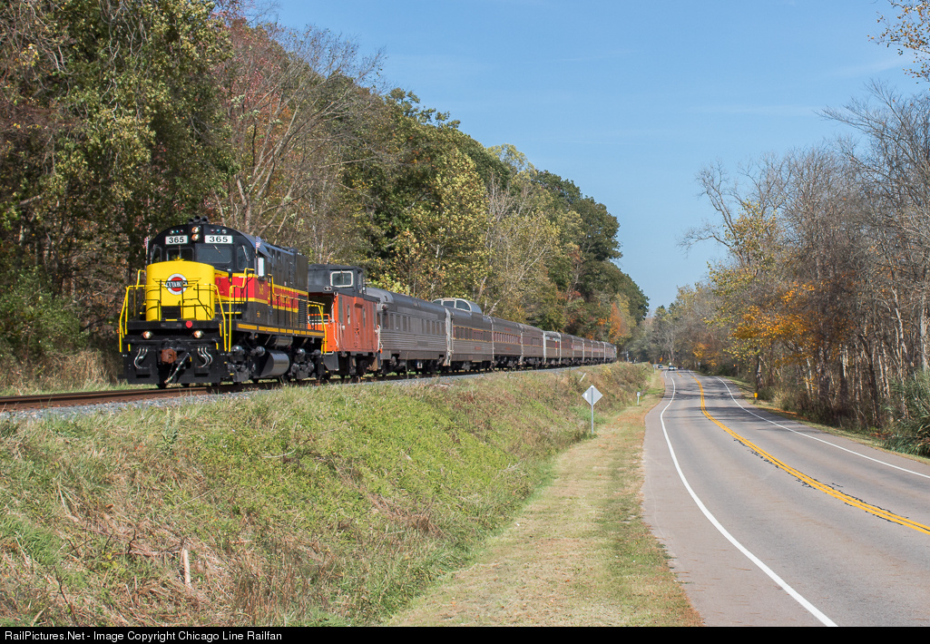 What should've been NE Ohio's fall color peak, newly renovated and repainted CVSR 365, assigned to the South Bound Scenic, rumbles parallel to Riverview Rd just South of Peninsula, OH. CVSR sent this locomotive to get a new prime mover, exhaust, etc. and was formerly an Alco C420. This unit is now "eco-friendly", now making the National Park happier without as much pollution in the air.