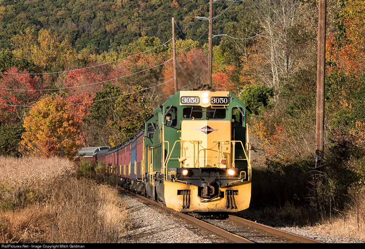 Reading & Northern No. 3050 leads "the big train" through Molino back to Port Clinton, PA from Jim Thorpe. The railroad, as they have in years past, offers both steam and diesel powered Fall foliage excursions along this route, as well as trains in the Lehigh Gorge, and the shorter shuttle train from Jim Thorpe to the Hometown Trestle. On this Sunday, yet a fourth trip ran from Pottsville to Jim Thorpe and return utilizing two of the railroad's RDC's.