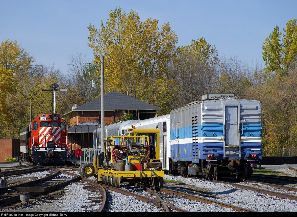 Some track equipment is beside Hays Station at Exporail, with GP9 CP 1608 at left and generator car AMT 603 at right.