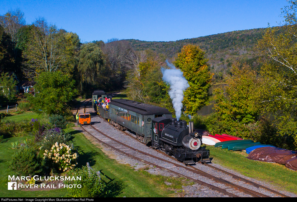 | As former Viscose Baldwin steam engine #6 passes through Halcottsville, New York on October 1, 2017 on the Delaware & Ulster Railroad, autumn colors are already beginning to overtake the scene. This was the first appearance of steam on this line in over 70 years. |