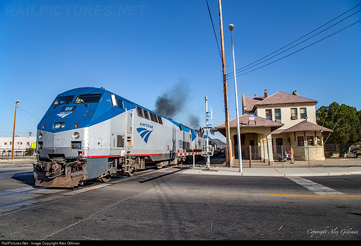 With the relatively slow speeds of Tehachapi behind it, Amtrak 14, the San Joaquin Starlight, highballs the original Southern Pacific depot in Bakersfield for a race up the heart of the Central Valley through communities like: Delano, Tulare, Visalia, Fresno, Madera, Merced, Modesto, Manteca (that enough 'M' towns for ya?) before making the turn at Lathrop for the run over Altamont Pass to rejoin its usual coast route.