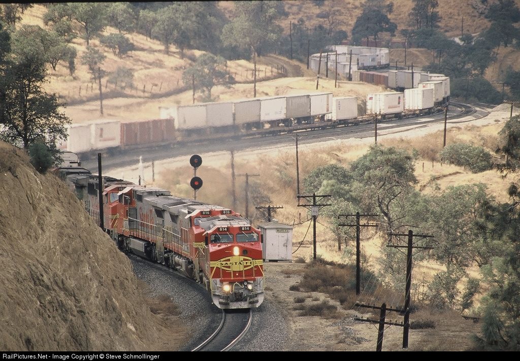 RailPictures.Net Photo: ATSF 814 Atchison, Topeka & Santa Fe (ATSF) GE C40-8W (Dash 8-40CW) at Marcel, California by Steve Schmollinger