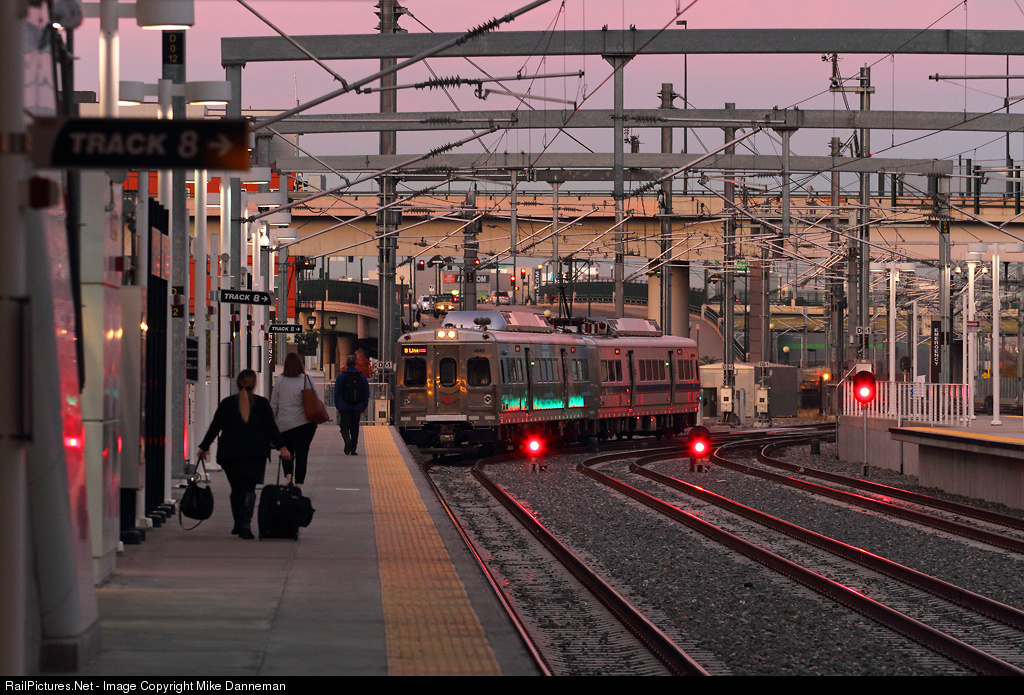Dusk has settled over Denver, Colorado, on October 16, 2017, as a RTD B Line commuter train arrives at Denver Union Station on Track 8. RTD’s B Line currently operates 6.2 miles from Union Station to Westminster Station near 72nd Avenue and Federal Boulevard.