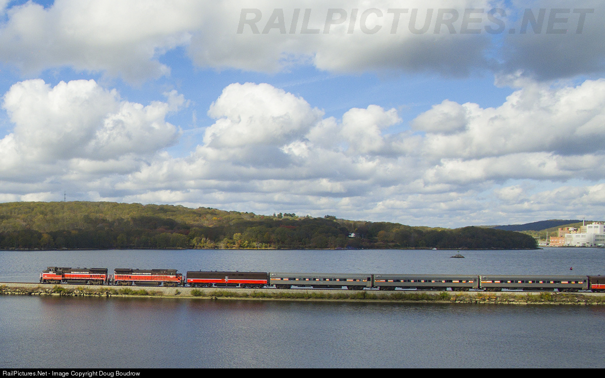 On October 28th, 2017 the Mass Bay Rail Enthusiasts chartered a day long passenger excursion from Worcester, MA using Providence & Worcester locomotives 4005, 4004 and their office car train to Old Saybrook, CT. Since Gennesse & Wyoming has bought the P&W the days of the orange and brown diesels are limited as the G&W paint scheme is being applied to all of their locomotives. At Old Saybrook the Valley Railroad picked up the train from the Providence & Worcester power and brought the train all the way up their operable track to Haddam using their New Haven replica Mikado #3025. After the return trip to Old Saybrook the P&W power brought the train home to Worcester. Here the train is seen on the causeway at Mill Cove in Gales Ferry.