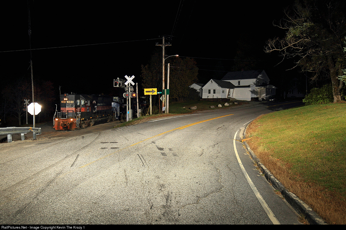 | With all the other high hoods being on the sidelines at Waterville, #380 is seen leading PORU by Curtis Corner under the cover of darkness. |