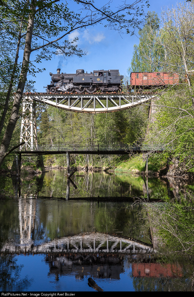 SJ #1306 is a class S2 2-6-4T steam locomotive built by AB Motala Verkstad in 1917. It is seen here on the bridge near Järle on the "Nora Bergslags Veteran-Jernväg", one of the oldest railroad in Sweden.