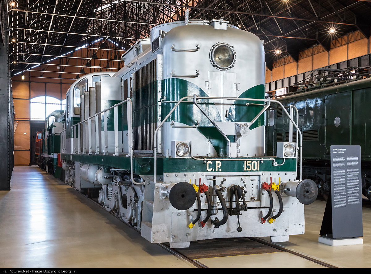 Another picture of this beautiful restored gem: Sixaxle (A1A-A1A) 1500HP ALCO RSC-2 diesellocomotive CP # 1501, built in 1948 as DE # 101 for the portuguese CP (Caminhos de Ferro Portugueses /Comboios de Portugal/), running on 1668 mm (5 ft 5 21⁄32 in) broad gauge, in the beautiful railway museum of Entroncamento. Twelve of this type were built, DE # 101 to DE # 112, in 1952 renumbered to CP # 1501 to 1512. Weight is 111 ton, max. velocity 105, from 1976 120 km/h. Uprated in 1976 to 2000 HP. Regular service of this series ended in 2000. The # 1501 was named "Almeida e Castro" to honor the engineeer, who faciliated the introduction of this first mainline diesellocomotives in Europ in 1948.
