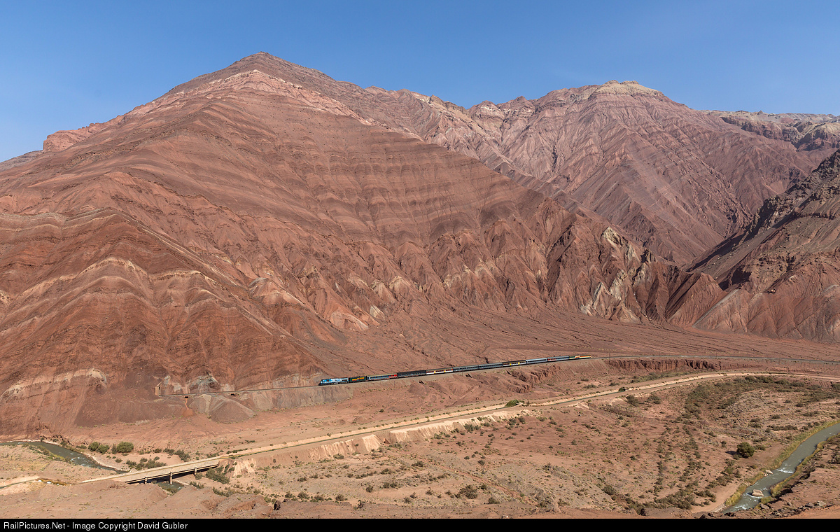 A GT26 in new livery hauls the daily local from Tehran to Sari through the canyon between Garmsar and Firuz Kooh.
