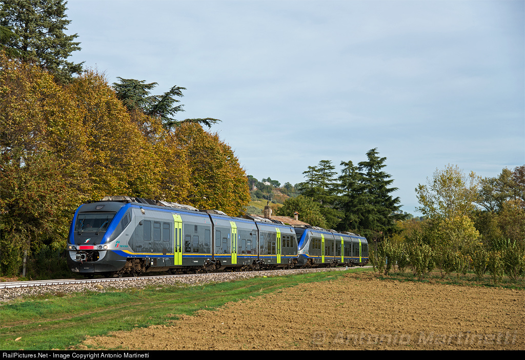 | Fall colours surround this Faenza-Marradi train, for which a couple of Minuetto DMUs is used to convey visitors to the locally famous "chestnut festival". |