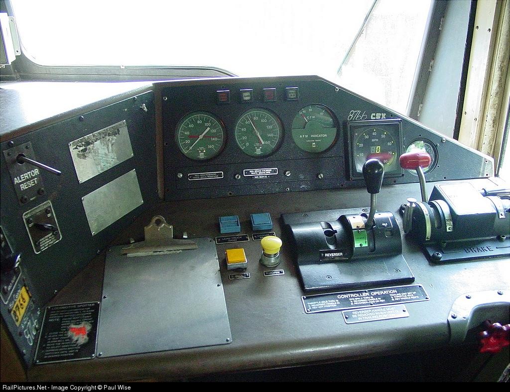 The cab of an ex. Conrail SD60M that has been repainted to CSX paint.