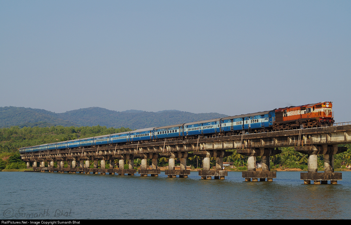 #16524 Karwar-Bangalore express crossing Aghanashini river led by WDM-3A 14048 from Ernakulam DLS.