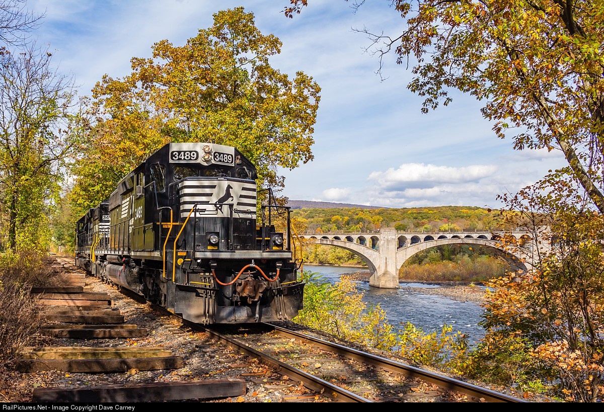 Two NS SD40-2s run light to Slateford Jct where they will couple up to DL train PT97 and assist it West to East Stroudsburg. The abandoned DL&W cutoff can be seen in the background.