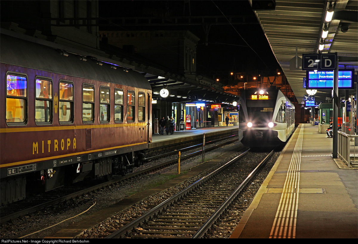 | Rolling stock of yesterday and today: a historic dining car and a Thurbo articulated lowfloor trainset "AKL" (long version).