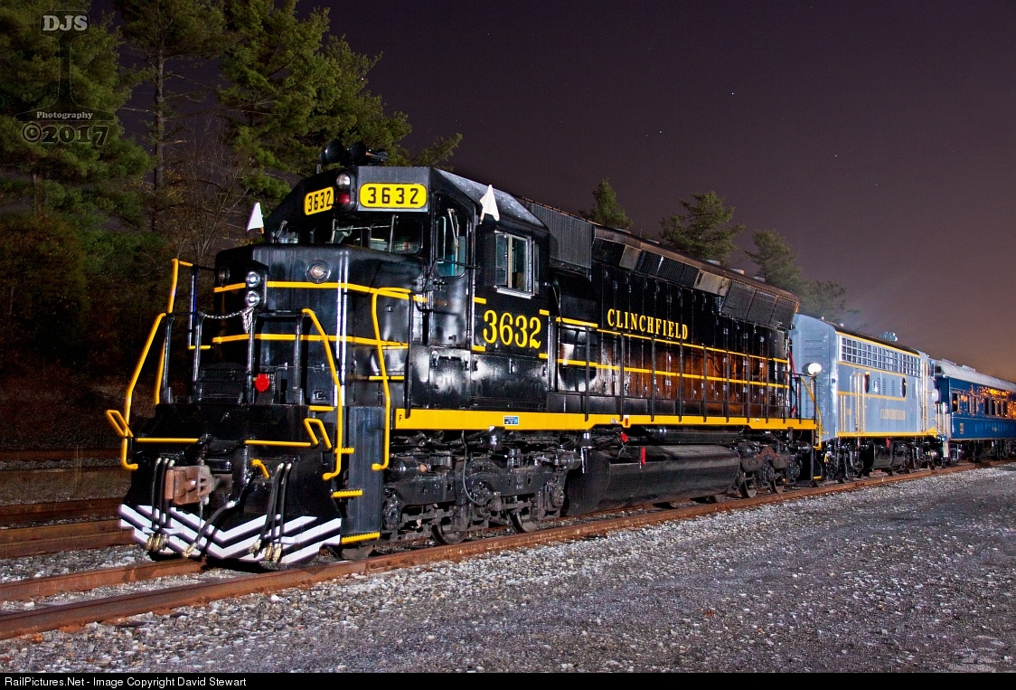 The start of a landmark occasion, CSXT's 75th Anniversary Christmas Train at Kingsport, Tennessee finds VLIX SD45 2024 disguised as Clinchfield "3632" ready for the deadhead move of P902 to Shelby, Kentucky