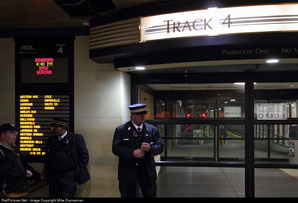 The conductor of a Metra/BNSF commuter train waits for his passengers to arrive and board his train parked on Track 4 at Chicago Union Station on November 8, 2017.