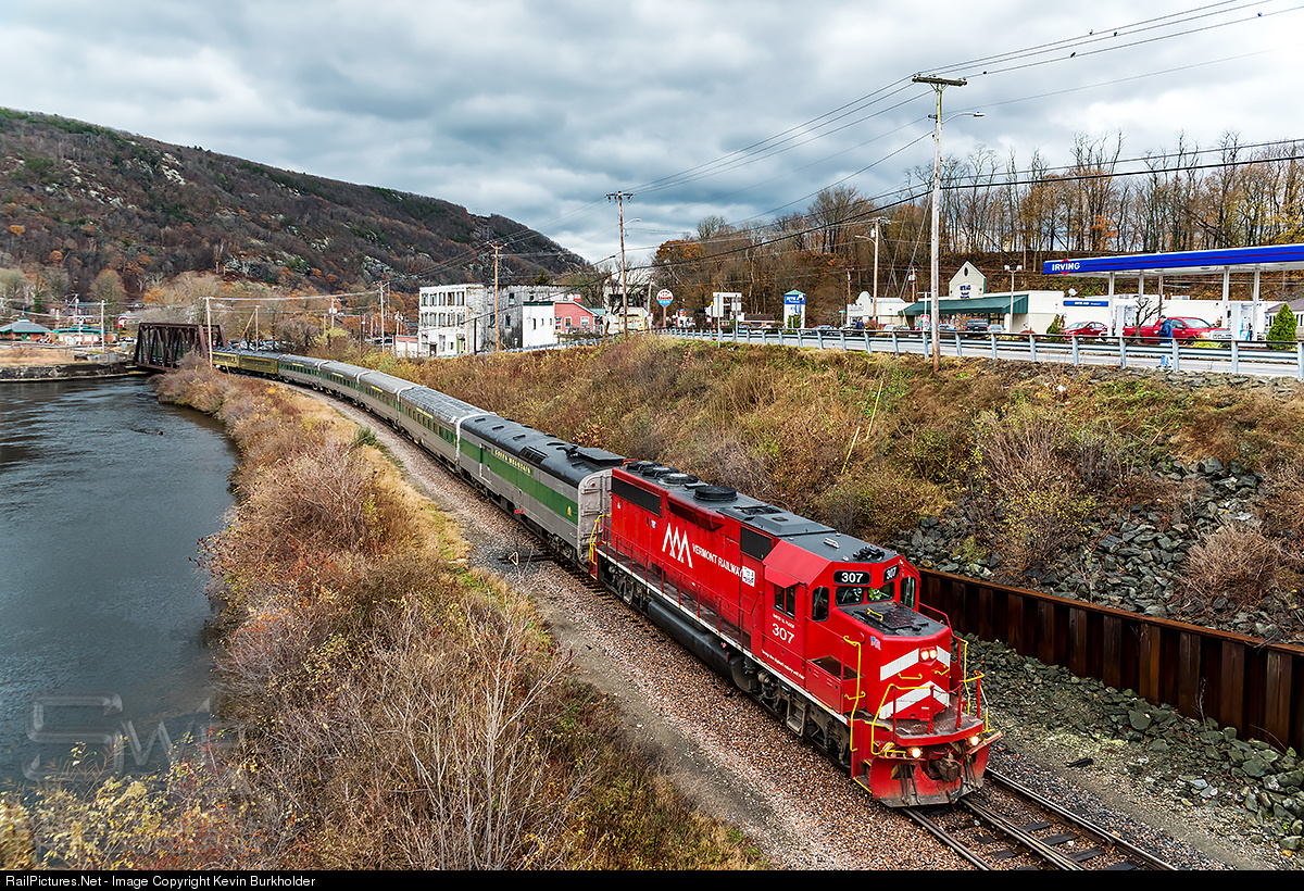 | Nothing says Santa Train like red and green! On November 19, Vermont Rail System kicked off the 2017 Santa Train season at Bellows Falls with Vermont Railway GP40-2 307 leading the Green Mountain Railroad consist on the 2.5-hour tour. |