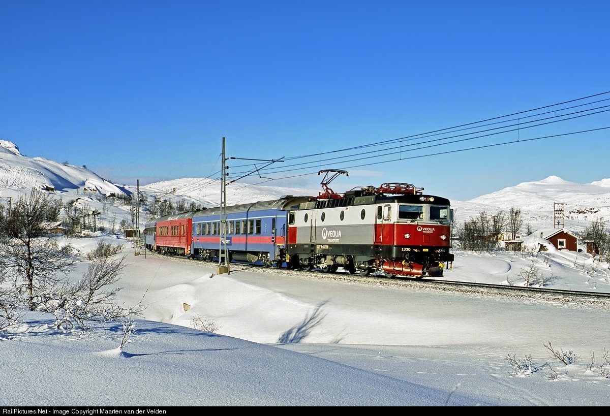 | Veolia Rc6 1330 with train 95 from Narvik to Luleå C. The locomotive is leased from SSRT, a subsidiary of SJ AB.
