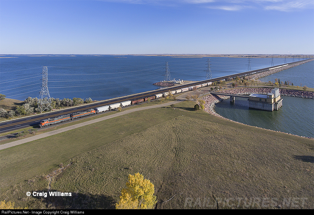 The Max Local pokes along at 10 mph as they pass thru the Lake Audubon area of the Missouri River between Coleharbor and Garrison. This job will get a 2nd crew on board that will work thru the night. The job is enroute to deliver cars to the CP at Max, and then pulling a grain empty for Garrison with the 1st pull, and then the regular manifest with the 2nd pull overnight. DMVW has 125 car max limit on this line, so the crew will have to pull twice tonight from the CP at Max. That will take most of the night, and crew will make it as far as Coleharbor for the day crew tomorrow. This is about the only scheduled train that we found while out here, alot of the other trains are extras.