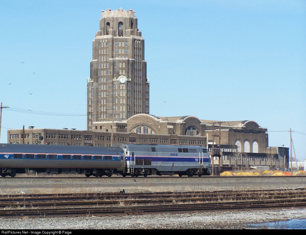 Amtrak 110 heads east past the abandoned but still majestic Buffalo Central Terminal