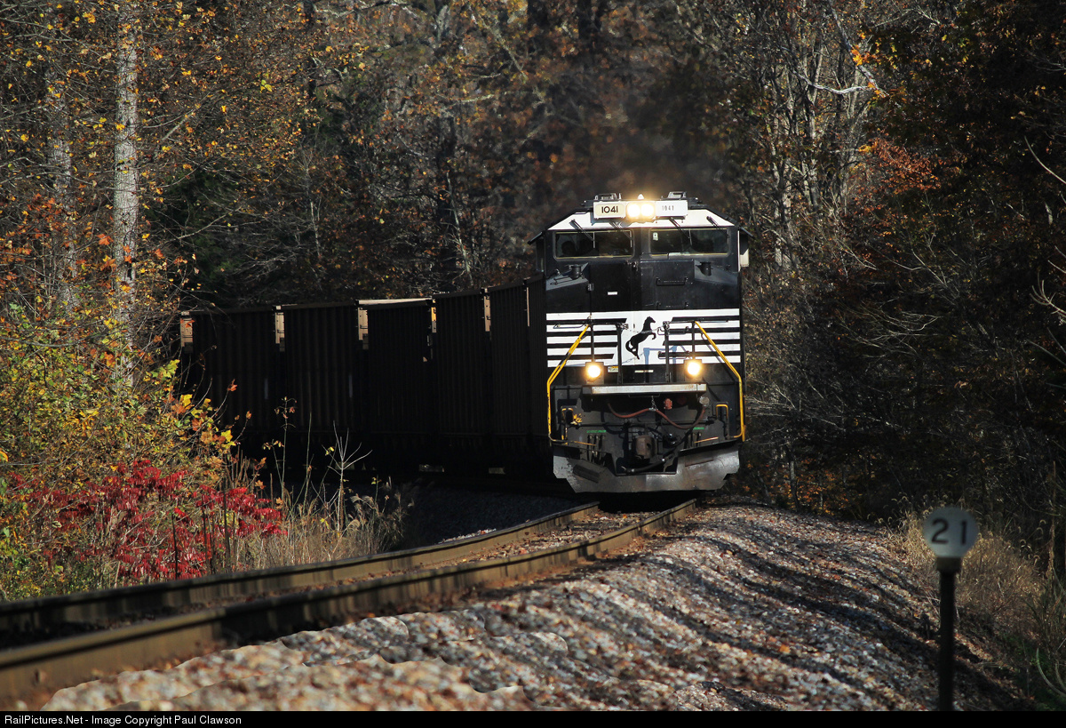 This NS 70ACe is just starting into dynamic braking as 707 descends the grade at NS milepost 21 of Horton's Summit just out of Duffield in the fall colors.