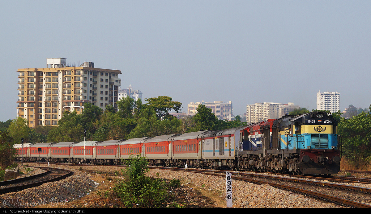 RailPictures.Net Photo: 16152 & 16173 Indian Railways WDM-3A at Udupi, Karnataka, India by Sumanth Bhat