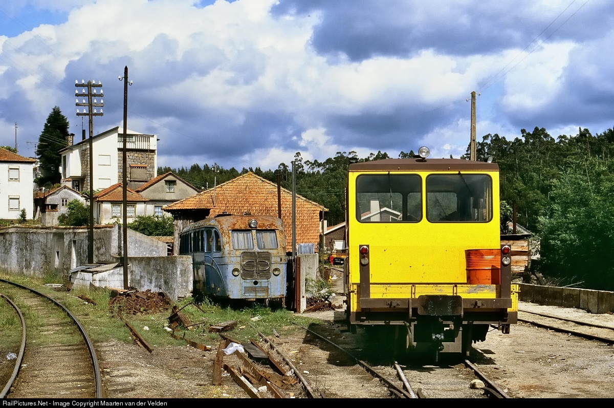 CP DPE 210 (Dresina Pessoal via Estreita) at the yard of Sernada do Vouga. On the left a railbus of the ME class. Three of thes railbusses were build by the shops of Sernada in 1940. Two of the are preserved yet and on display at the CP Núcleo Museológico de Macinhata do Vouga.