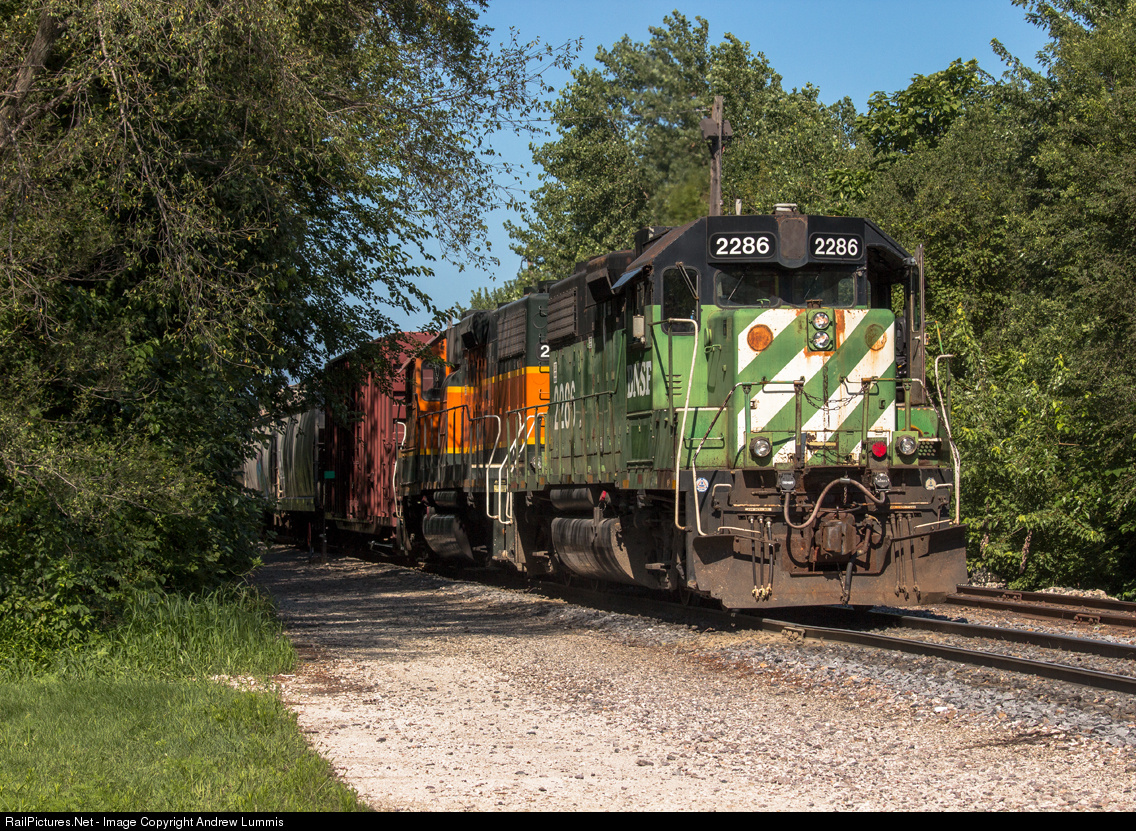 | Ex.BN now BNSF 2286, hostles cars around the yard in Barstow, Illinois. |