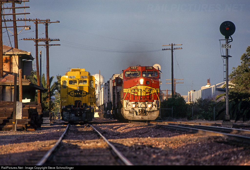 A hot Santa Fe 199 accelerates through Pittsburg as its lead unit rocks through the east switch of the siding there. Partly obscured in shadow is a GP30u that the railroad uses for locals based in Pittsburg. Note that this town's name is missing the "h" on the end that the more famous city in PA has.