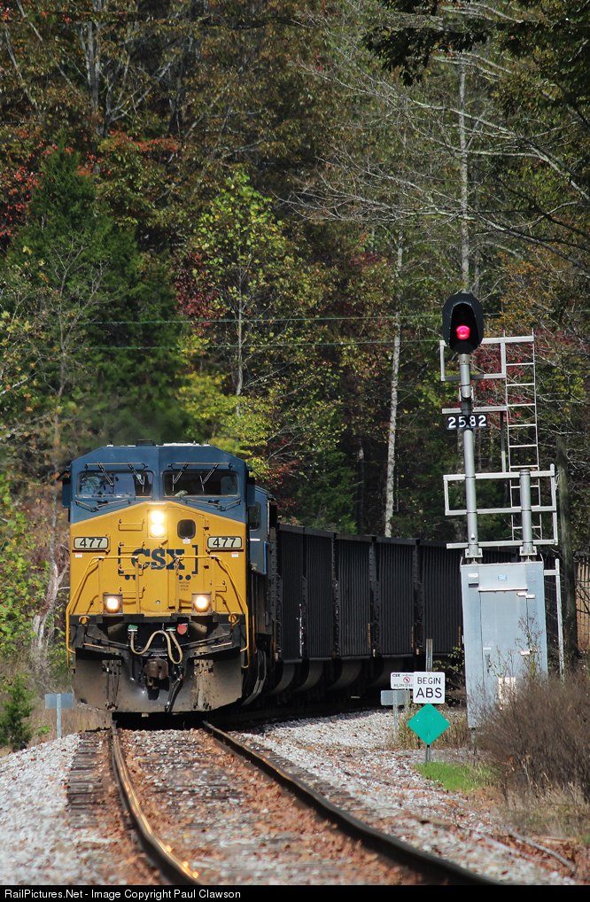 | CSXT 477 is about to enter the Hagan Yard limits with the majority of their train still inside the Hagan Tunnel and a good portion of that still in Harlan County, KY. This is an empty train bound for Lone Mountain Processing at NS Benedict in the community of Miller's Cove. |