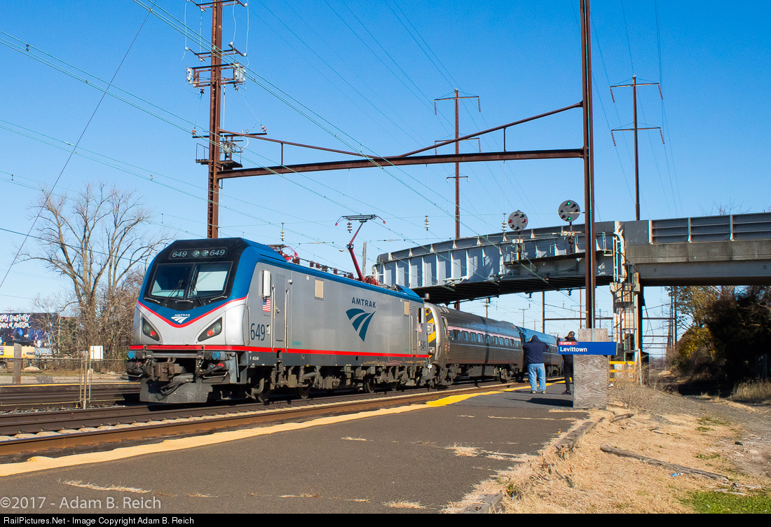 All Hands on Deck: With the extra passenger traffic around Thanksgiving, Amtrak pressed as many available cars into service as possible. This led to the unusual placement of an extra cab car behind the locomotive on Keystone Service Train 664 on Sunday, November 26, 2017. Note the railfan photographers on the platform out to capture the action.
