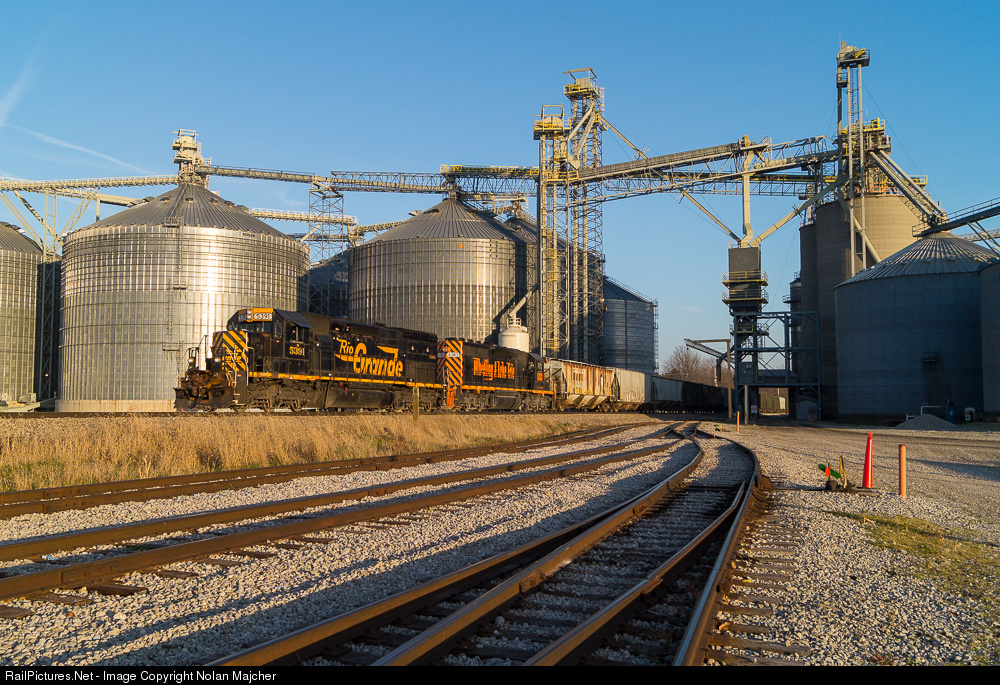 Wheeling train 223 is on the final stretch of its run from Brewster to Hartland as it rolls through the Sunrise Cooperative complex at Clarksfield, Ohio with Rio Grande Tunnel Motor No. 5391 leading the way west into the setting sun. The train would be tied down at Hartland Yard after a very quick run from Brewster.