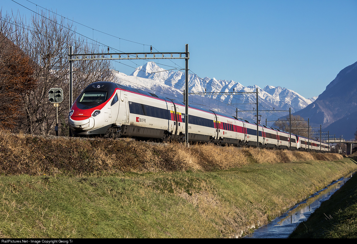 | Pantograph tests with highspeed tilting trains RABe 503 # 018 and # 017 in multiple between Sierre and Sion. |