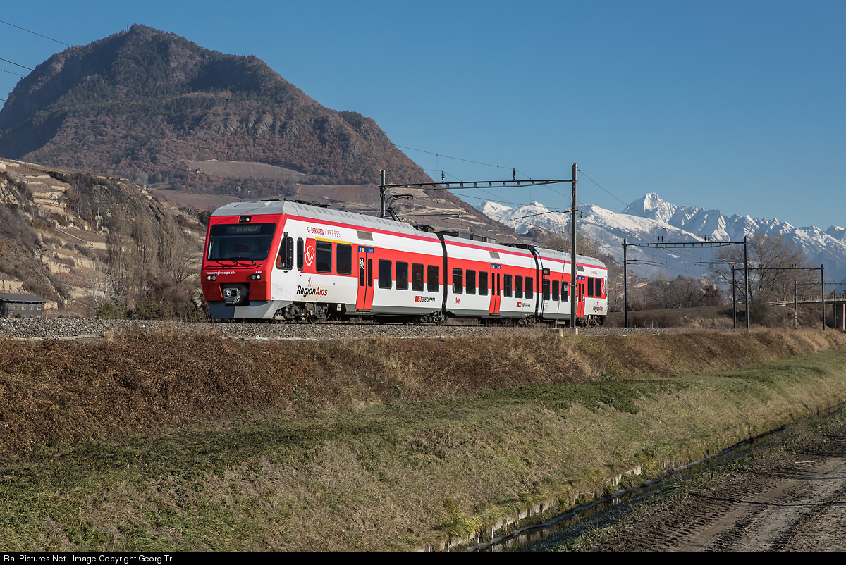 | "NINA" RABe 527 # 514 of the RegionAlps (former designation RABe 525 # 038) is running light from Brig to Martigny between St-Léonard and Sion. The maintenance of this trainsets is made in Brig. |
