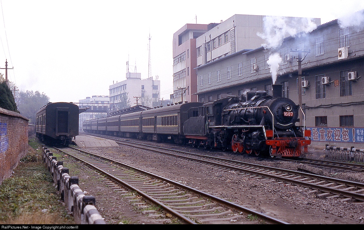 A welcome feature of the Pingdingshan coal railway was steam hauled passenger trains. Here SY1687 is seen at Zhongxin station in November 2003.