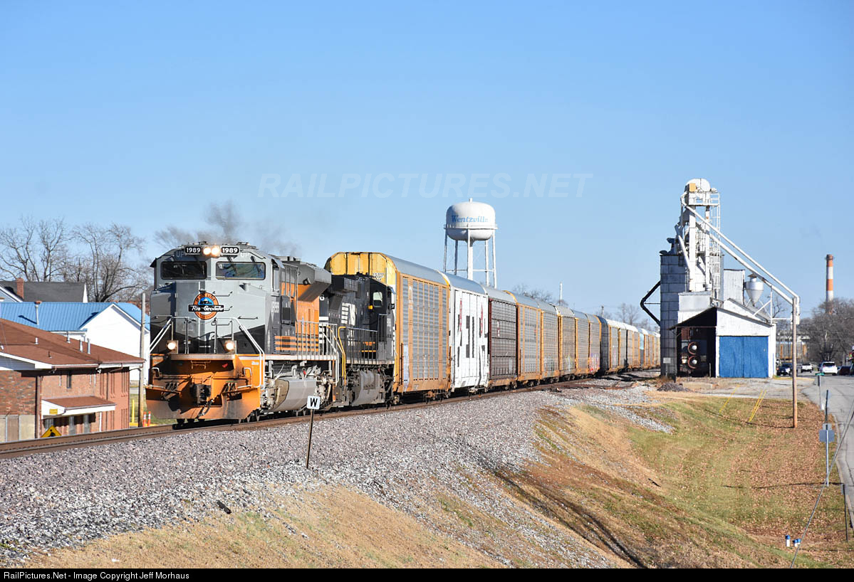 | NS train 239 came with a surprise today leading a Atlanta to Kansas City bound autorack train seen here passing through Wentzville, Missouri on Norfolk Southerns St. Louis District.