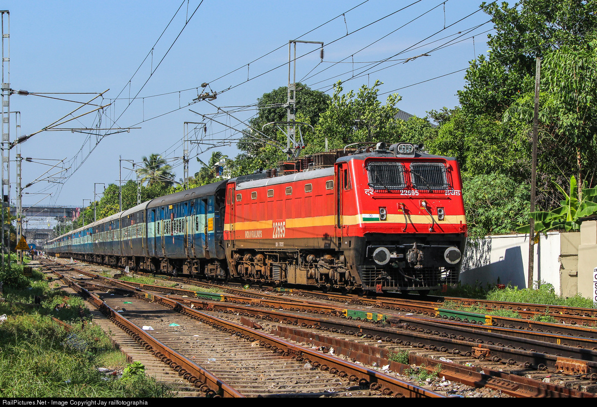Fresh from overhaul, ERODE WAP-4 with Parasuram Express switching to Kottayam line on its way to Nagercoil Jn