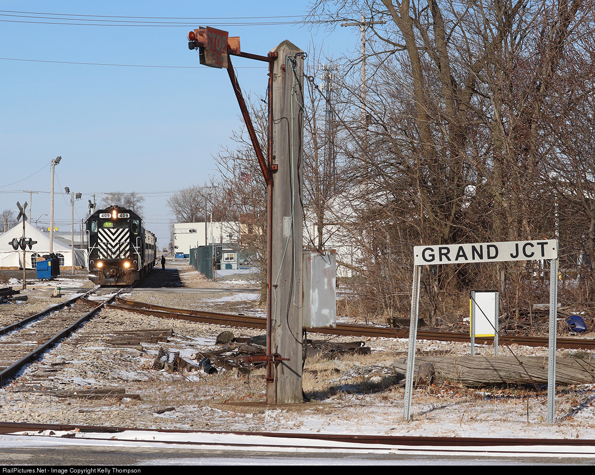 GMTX 409 (GP15-1) sits north of Grand Junction in Kokomo, Indiana while on duty for ITM's Polar Bear Express trains. Grand Junction was a hot spot in Kokomo where the PRR and the NKP crossed. Based off of the old crossing and track condition, it is obvious that very little, if any at all, ever goes over the diamond.