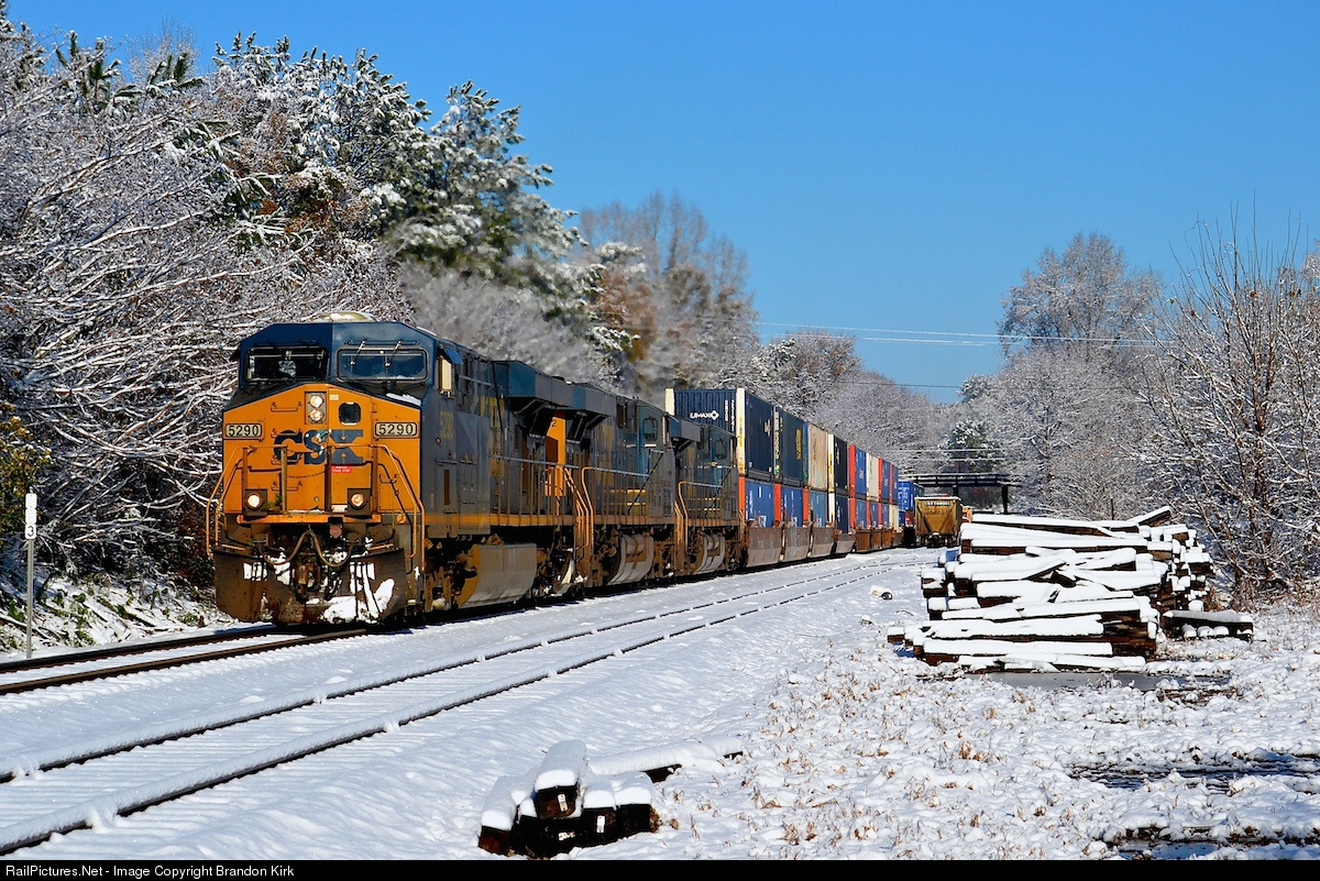 Snow in Roanoke?... Yes, it's true!... That fluffy white stuff is a rare sight in this part of the country, sometimes taking years before dropping by again. Normally several inches are out of the question, but this time was definitely different. After a slight delay in CSX train Q101-07 schedule, due to a (frozen switch) at the southend of Broughton, the East Coast bound intermodal shipment continues to ski south under the power of three CSX wide-cabs. I imagine the friendly crew (waving as they passed) has enjoyed the beautiful scenery thus far.