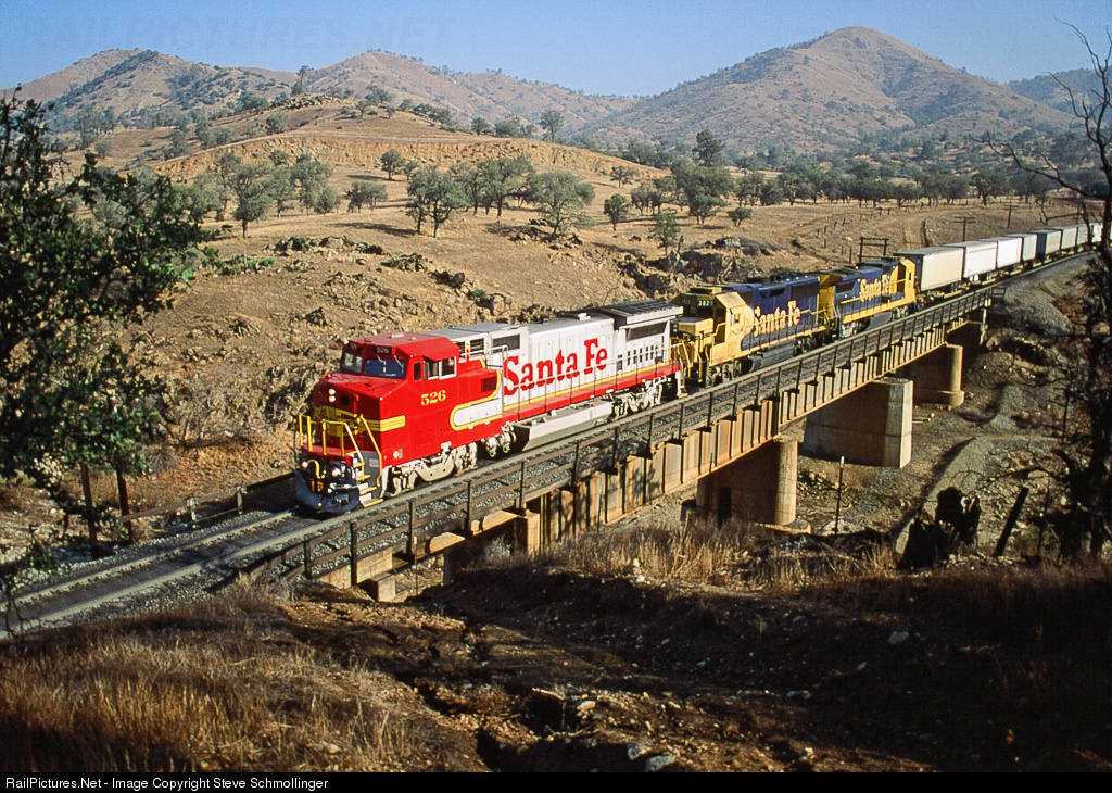 Having been in revenue service for a little over a month, a clean B40-8W No. 526 leads a 199 train over the 4th crossing of Tehachapi Creek, just east of Woodford, CA. The train is on the western slope of the pass, and will wend its way down to Sandcut before opening up the throttle for a fast run into Bakersfield and up the San Joaquin Valley.