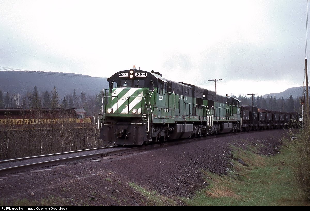 LSI 3004 brings iron ore loads thru Empire Junction as WC 6619 waits to head to the mine with empties. My wife and I were on our honeymoon in May of 1997 when I took this shot.