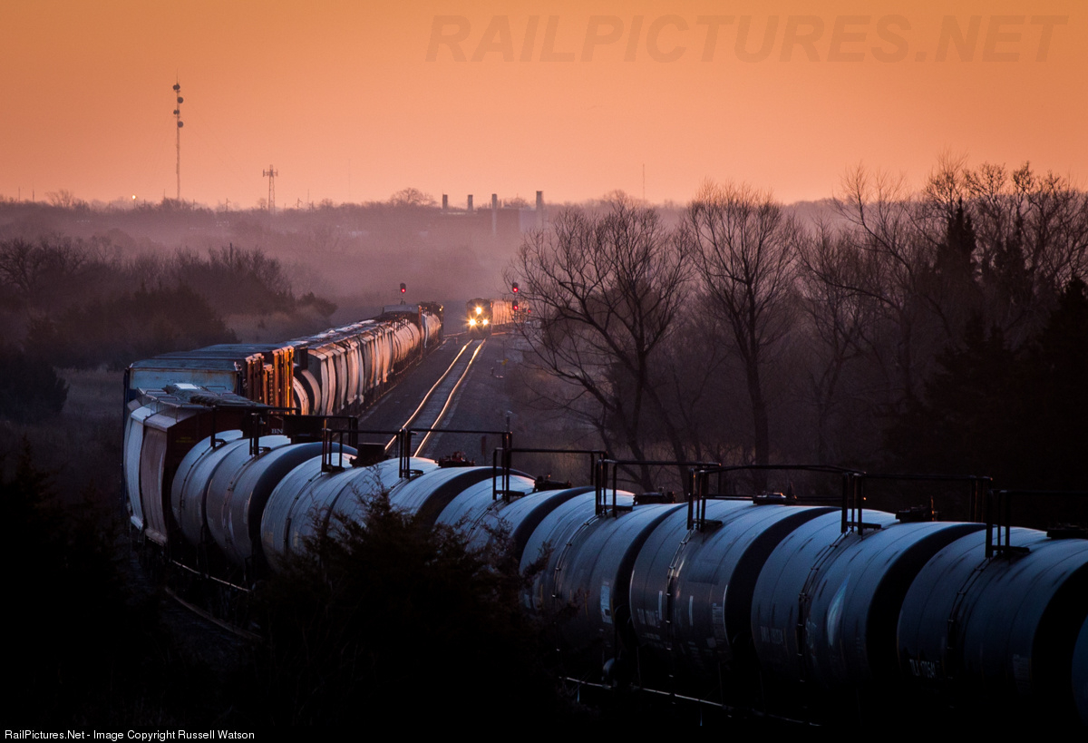 The H BELKCK holds main 1 while a Westbound grain train climbs its way up out of town, beginning its journey across the Panhandle Sub on a cold and clear Saturday morning.