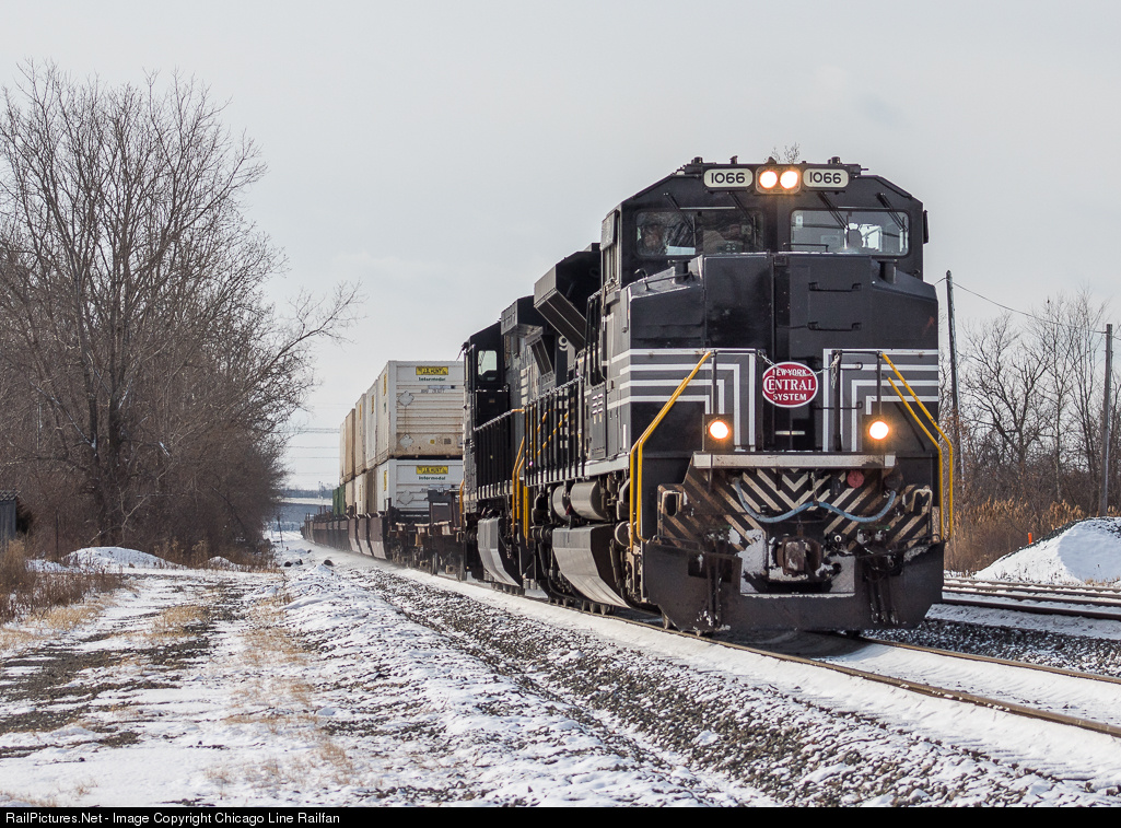 In below frezzing tempatures, NS 1066, in charge of NS #206, rumbles slowly through the snow in Brookpark, OH about to pass the diverging clear signal he has into Rockport Yard. Later, this train would plow through Willougby, Painesville, Conneaut, and many more cities that have had 30+ inches of snow. In Conneaut, the nose of the locomotive wasn't even visible because of all the snow stuck on the front.
