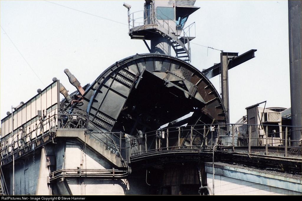 Another photo of the rotary dumpers at Lamberts Point. If you look closely you can see the car has been almost completely flipped. The other photo is http://www.railpictures.net/viewphoto.php?id=49790