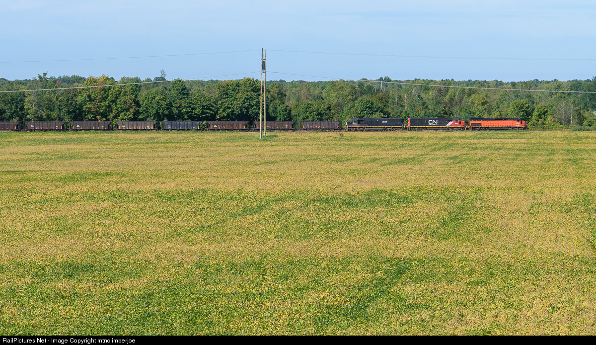 BLE 905 leads CN and IC locos on a southbound ore train, passing Pond Road just after crossing the state line into Pennsylvania.