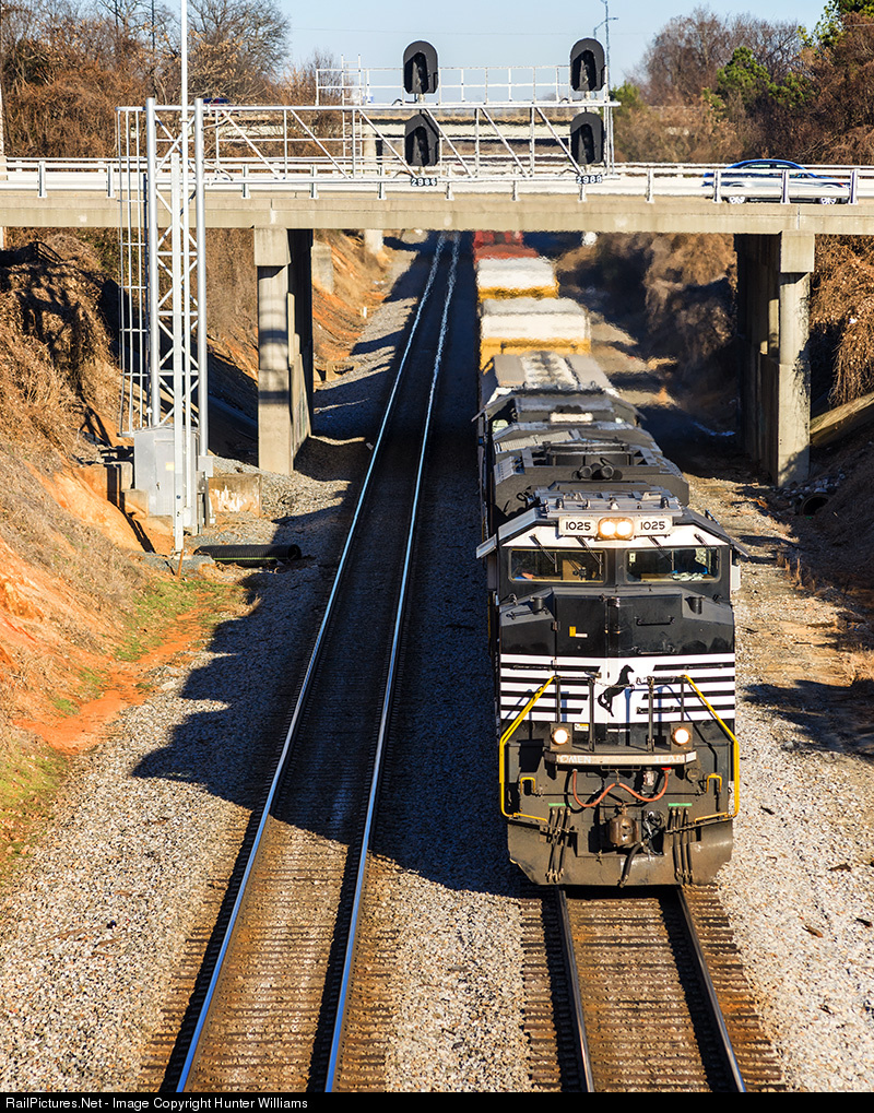 | Norfolk Southern southbound manifest freight train number 159 cruises through High Point, NC on January 2, 2018. |