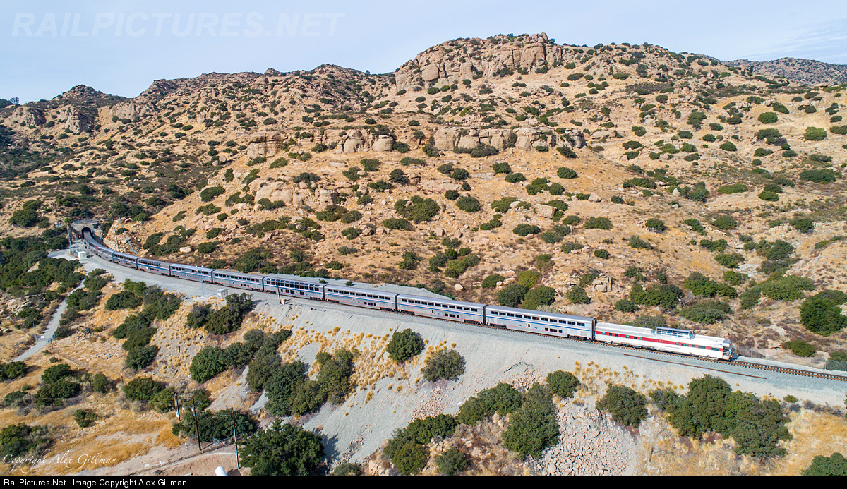 Coast Bound Varnish. Snaking its way into Tunnel 26, Amtrak's northbound Coast Starlight bids the San Fernando Valley farewell as it works toward its next station stop of Simi Valley with the private car "Sierra Hotel" bringing up the markers this morning.