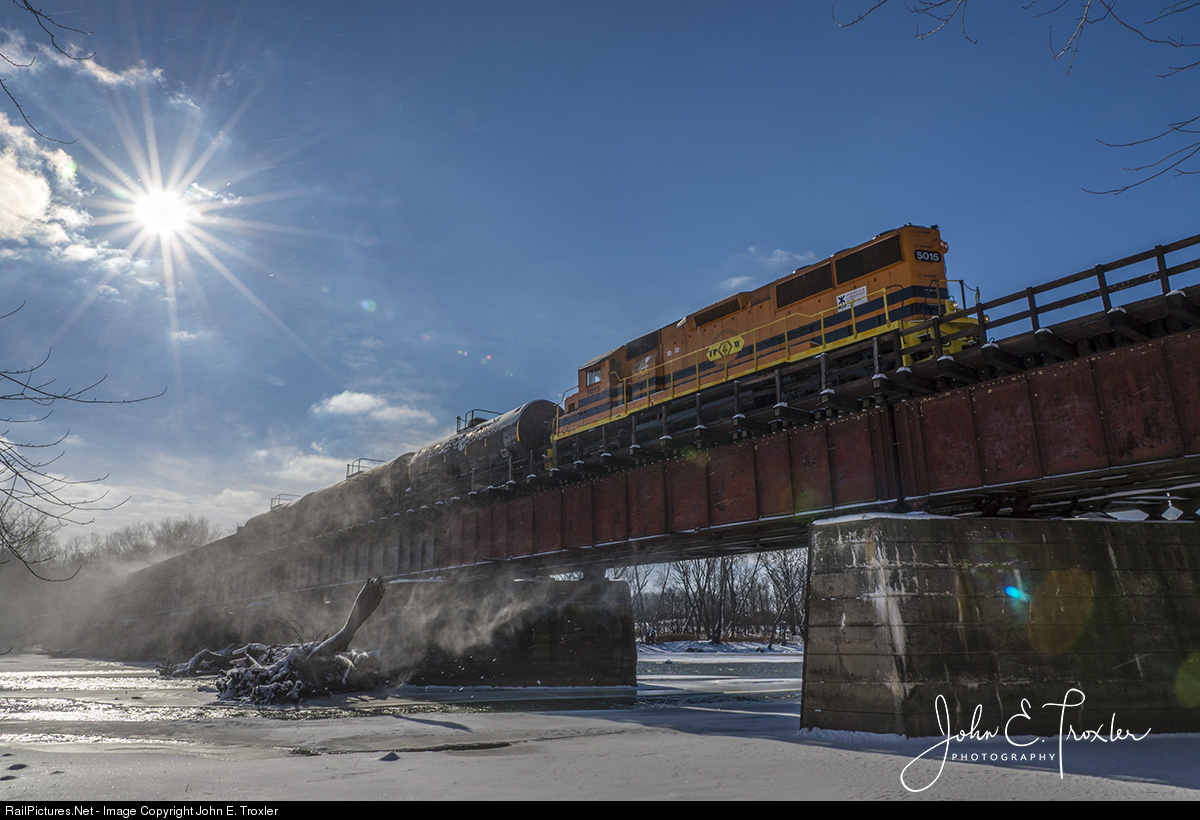 | With the temperature hovering around 7°F and 10 mph wind gusts the TP&W local proceeds westbound across the Wabash River after switching cars in the Logansport, IN 18th Street yard around noon Saturday 12/30/17.